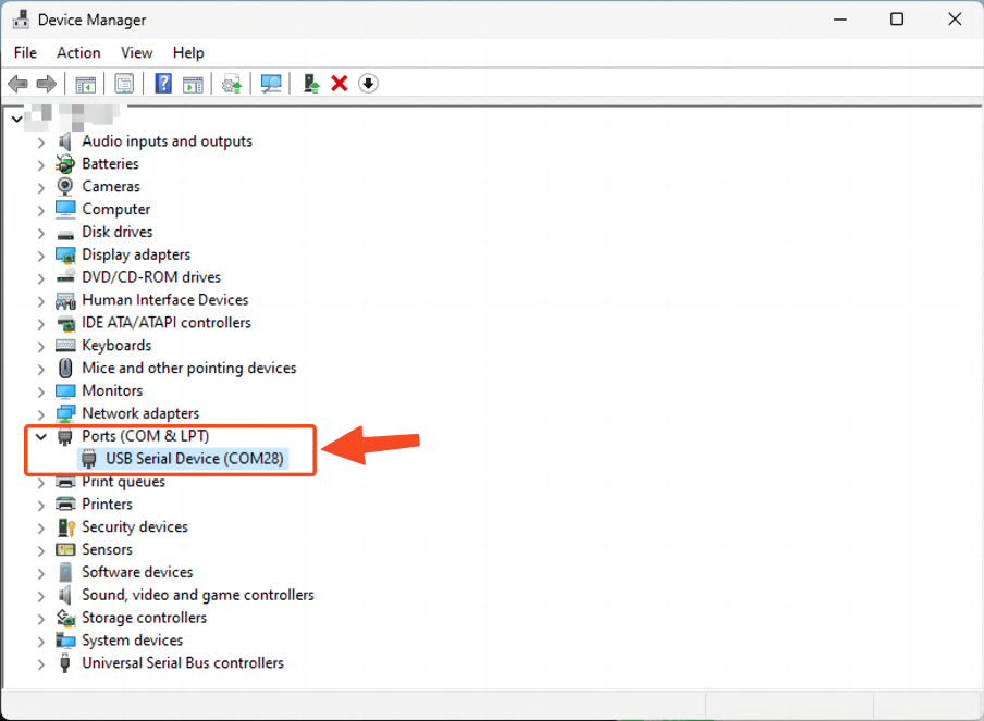 *The serial port number in the image above is for the MacOS system. If your computer is running a different operating system, you will need to replace the serial port number with the appropriate one.