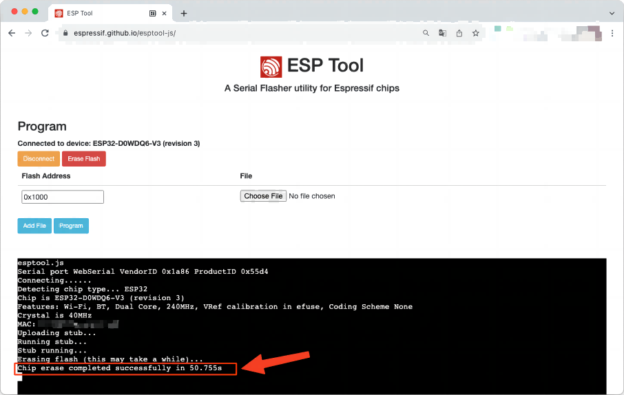 In the following steps, we'll erase the ESP32 flash chip using a web-based demo provided by Espressif Systems..