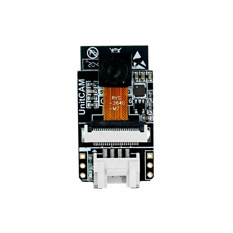 Unit CAM M5 launched a very cost-effective Wi-Fi camera, using ESP32-WROOM-32E control core + 2MegaPixel image sensor (OV2640) solution on the hardware, using the most simplified design, no extra peripherals. The factory software integrates image transmission firmware, provides image data acquisition, image parameter (white balance, exposure, gain, size and other attributes) adjustment interface, users can directly acquire image data through UART or Wi-Fi, and interact with the camera. Support UIFlow graphical programming call, realize zero development, out-of-the-box user experience. The compact design and cost performance are suitable for various wireless camera application scenarios.