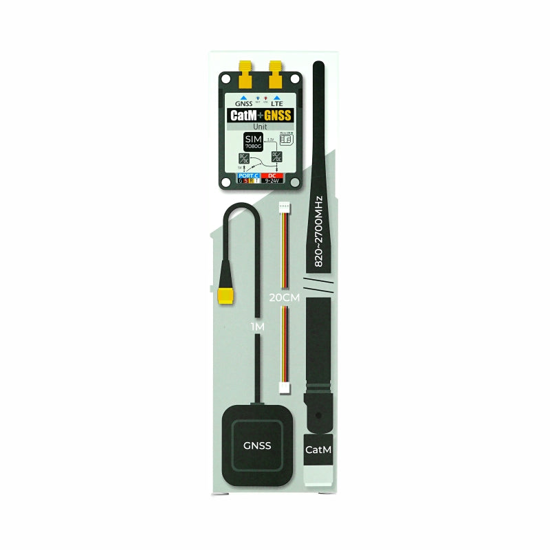 CatM+GNSS unit is a global version of a wireless communication module that supports both CAT-M (Category M) and NB-IoT (Narrowband Internet of Things) dual-mode connectivity. The module, powered by the SIM7080G internal module, is designed to operate on CAT-M and NB-IoT bands globally, making it compatible with various cellular networks worldwide.