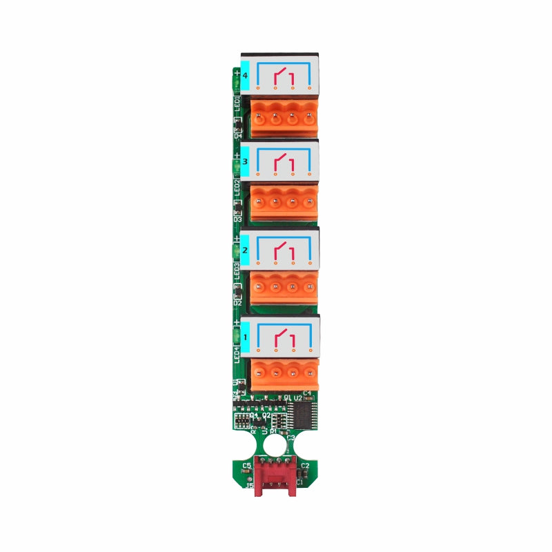 4 relay unit provides a convenient solution for controlling multiple electrical devices or circuits. With four independent relays, each relay can be controlled individually, allowing different devices or circuits to be activated or deactivated as required. Programmable status LEDs provide visual feedback on the current status of each relay, making it easy to determine whether a relay is on or off.
