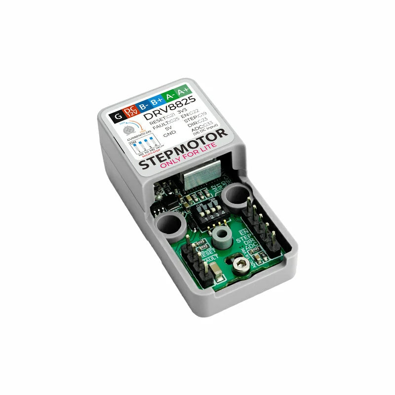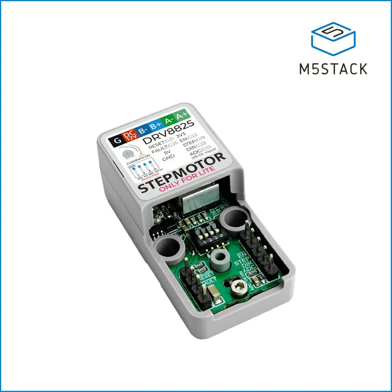 Atomic Stepmotor Base is the standalone version of the ATOM Stepmotor, designed for users who already have an ATOM series controller and can directly purchase the base for use. This base is equipped with a high-performance DRV8825 driver chip, which can be used to drive stepper motors. By adjusting the variable resistor, it can provide a maximum driving capability of 1.2A, providing stable and powerful power for the stepper motor. In addition, the chip in the base has built-in overcurrent protection to ensure the safe operation of the motor and base.