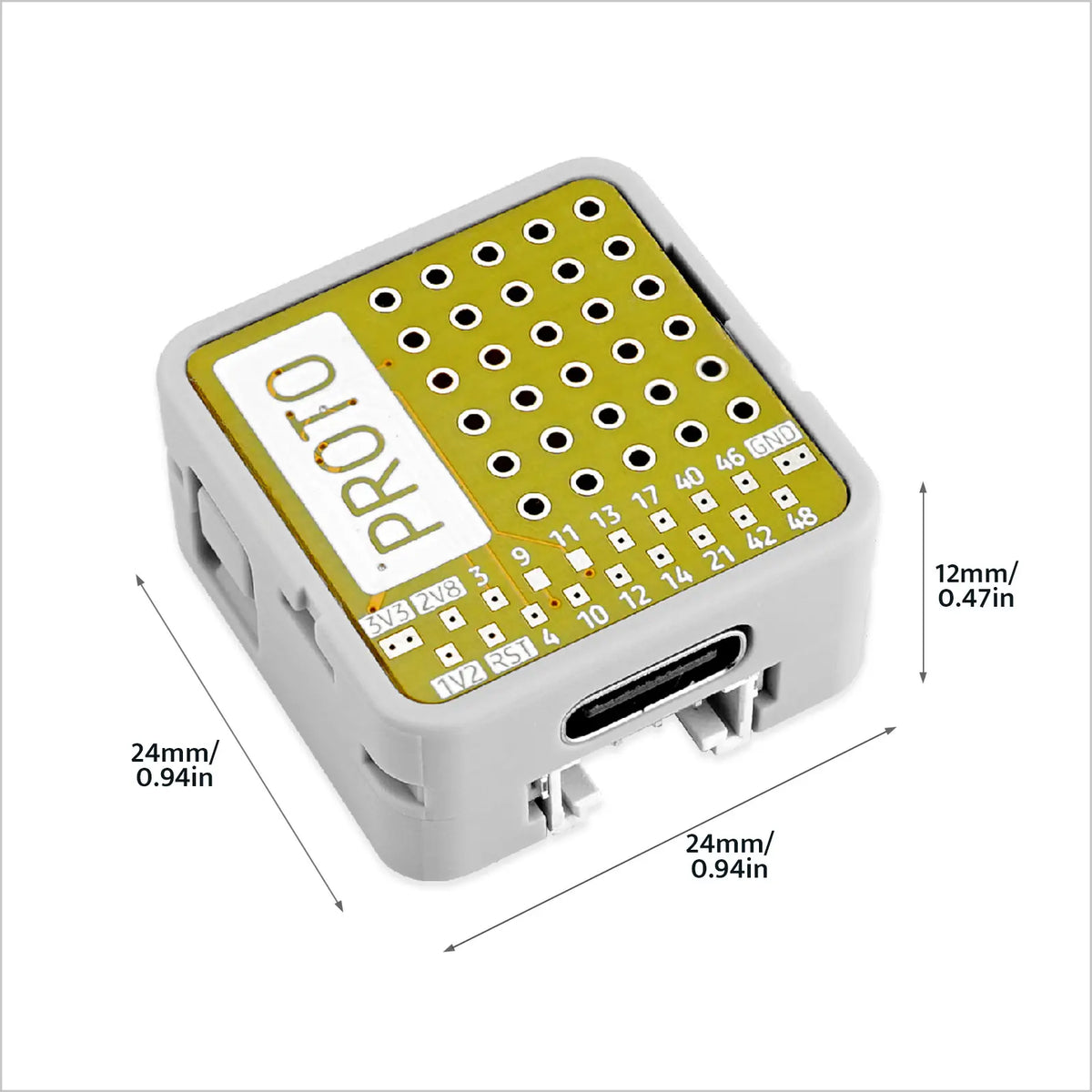 AtomS3R-Ext is a programmable controller based on the ESP32-S3 main control, designed for prototype development and extension. It features a universal expansion board on top, allowing users to connect and debug multiple IO ports, suitable for expanding and verifying various peripheral modules. It integrates the ESP32-S3-PICO-1-N8R8 main control, supports Wi-Fi functionality, and includes 8 MB of on-chip Flash and 8 MB of PSRAM, along with a power circuit converting 5V to 3.3V/2.8V/1.2V. It has a built-in three-axis BMM150 geomagnetic sensor and a six-axis BMI270 attitude sensor. The controller is equipped with a USB Type-C interface for power supply and firmware download, and features a HY2.0-4P expansion port, six GPIO and power pins for easy function expansion. Compared to previous ATOM series host products, the 3D antenna of AtomS3R-Ext has been enhanced, providing better signal performance and stability. With dimensions of only 24.0 x 24.0 x 12.0mm, it is ideal for prototype development and verification applications in embedded smart devices.
