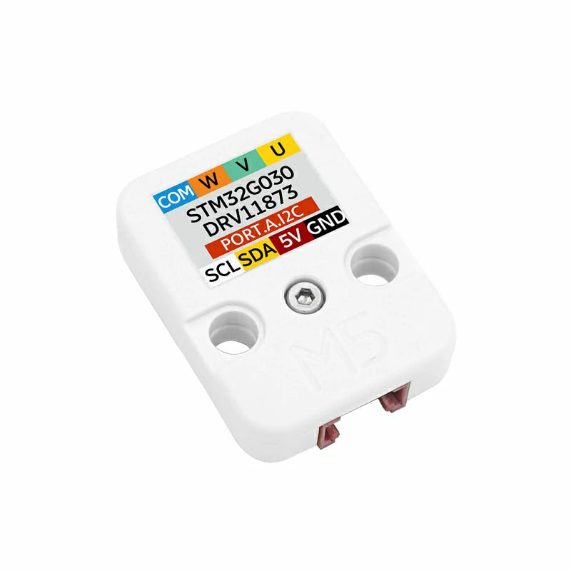 The Unit-BLDC Driver is a driving unit specifically designed for Brushless DC Motors (BLDC), utilizing an STM32 as the primary control chip. It enables precise control over the DRV11873PWPR motor drive chip through I2C communication, facilitating PWM speed control adjustment, monitoring, and direction switching functionalities. This drive chip features a simplified control interface and integrated stall protection, ensuring efficient and low-noise operation of three-phase small brushless DC motors. The onboard STM32 upgrade interface facilitates firmware updates and functional expansions, making it suitable for applications in industrial automation, smart robotics, precision instruments, and other fields.