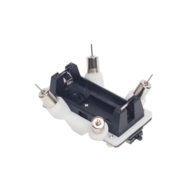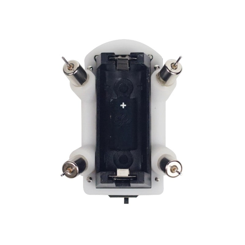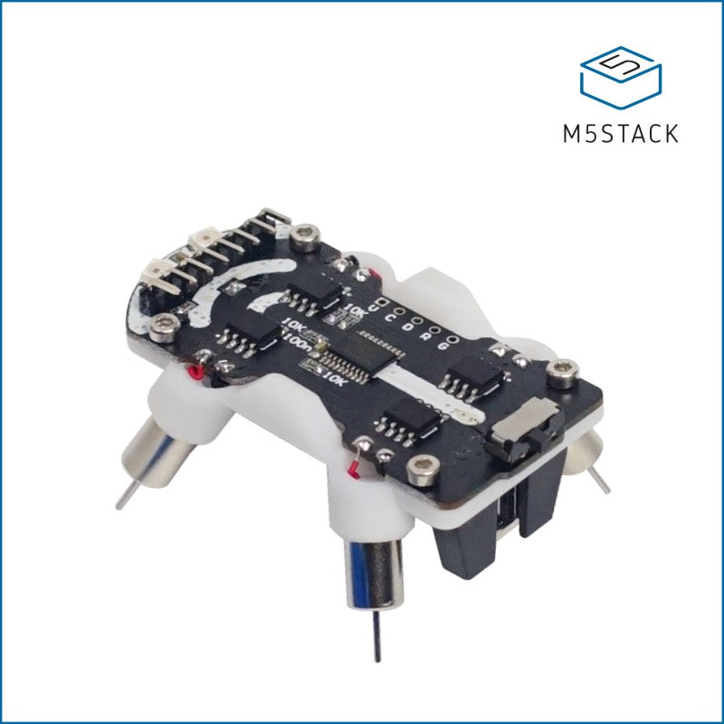 BugC is a programmable robot base compatible with the M5StickC. This has four DC motors, motor driver, two RGB LEDs, battery holder and a switch. The Bugc base needs to be used in conjunction with the M5StickC controller. The base comes with an STM32F030F4 micro controller which controls all the motors and LEDs and this is controlled through I2C protocol(0x38) by the M5StickC which sits on top of the base.