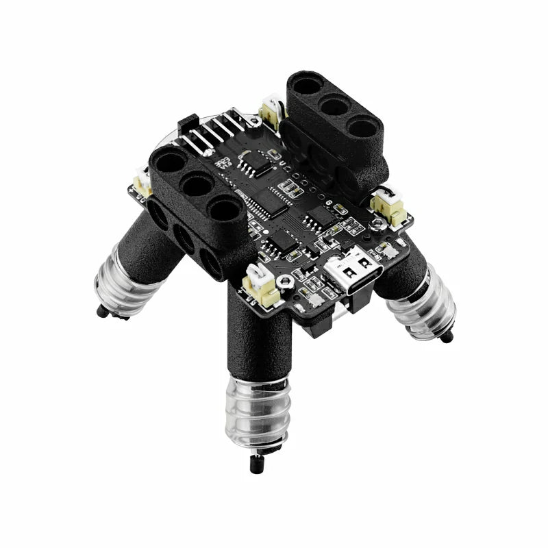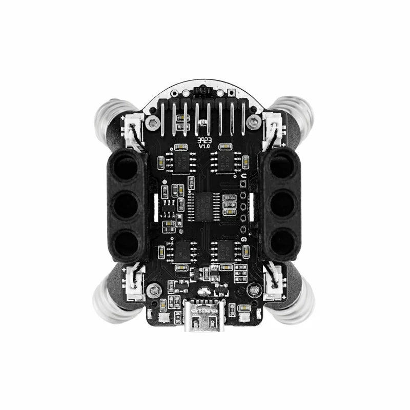 BugC2 is a programmable robot base compatible with the M5StickC series controllers. This base integrates four L9110S motor drivers and DC gear motors, utilizes the STM32F030F4 as its core control chip, and comes equipped with two flexible programmable RGB LEDs, an infrared encoder, and a dedicated battery holder. Through its top slot, BugC2 can closely connect with the M5StickC controller, precisely receiving control commands via the I2C protocol (address 0x38). Beyond providing basic mobility capabilities, BugC2 also features a Type-C charging port, battery reverse connection protection, and voltage detection for enhanced safety and convenience. Its built-in 700mAh 16340 rechargeable lithium battery ensures long-lasting battery life, making it a multifunctional and efficient programmable robot platform suitable for various educational and innovative applications.