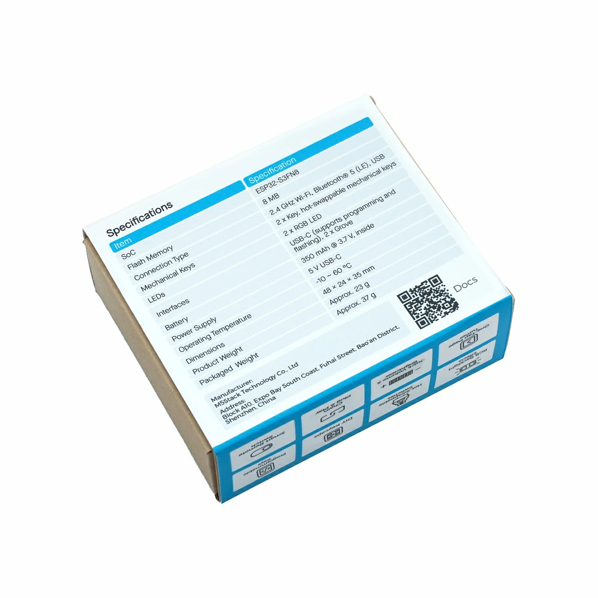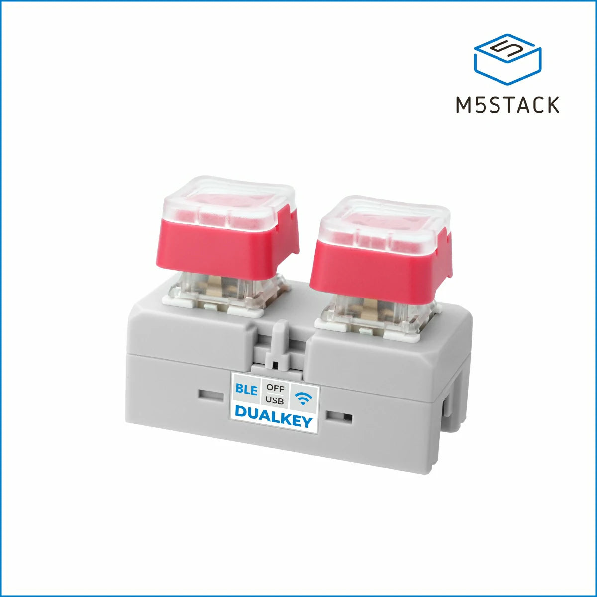 Chain DualKey is a programmable dual-key input development board equipped with the ESP32-S3FN8 main control chip. The front integrates 2 hot-swappable blue switch mechanical keyboard keys and 2 programmable RGB LEDs, providing excellent interactive feedback. It has a built-in 350mAh lithium battery, combining with a low-power design for good battery life. The product comes with pre-installed Chain macro keyboard firmware, supports USB / BLE connections, and can emulate HID input devices. After the device is powered on, you can connect to the device's AP hotspot and configure the HID function mapping for the local device or expansion nodes via the built-in web page to achieve various control functions. This development board adopts the M5Stack Chain series expandable design, featuring two HY2.0-4P expansion ports that support lateral expansion and connection to other sensor devices. With the USB-OTG peripheral function built into ESP32-S3, it is suitable for smart home, keyboard peripherals, macro keyboards, and other scenarios.