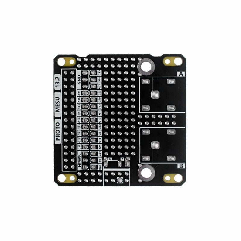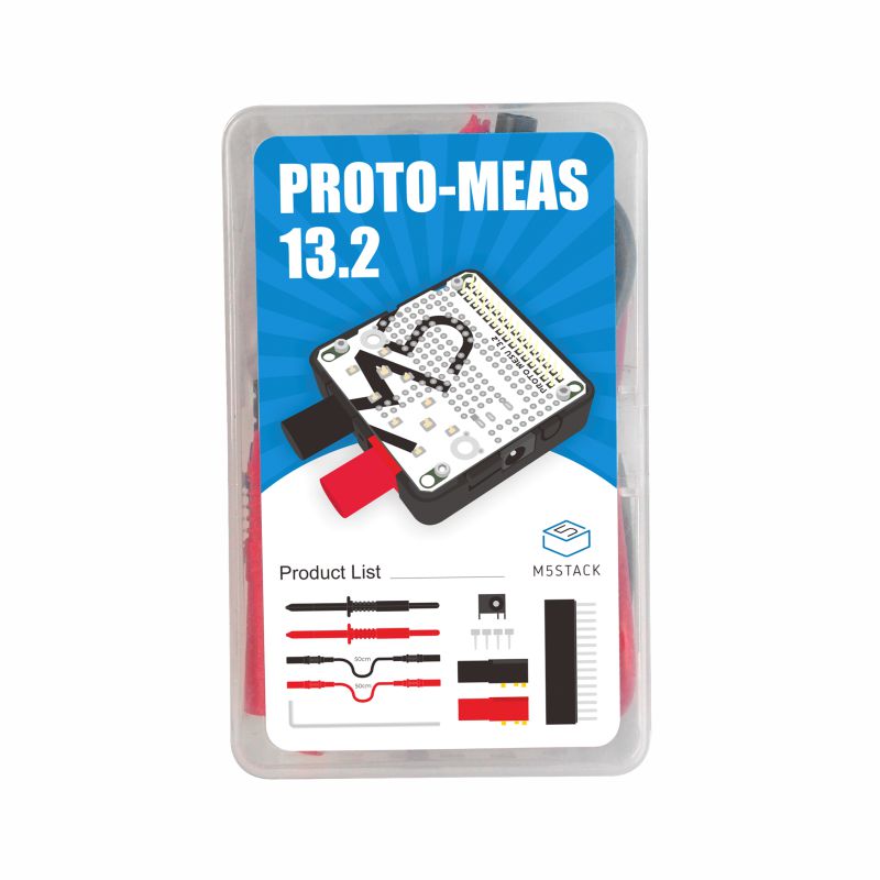 PROTO-MEAS 13.2 is a stackable DIY proto module for measuring current and voltage, with Multimeter probe and matching base, which is convenient for users to make a simple multimeter. The height of the module is 13.2mm, and a DC power jack is included on the board for external power.