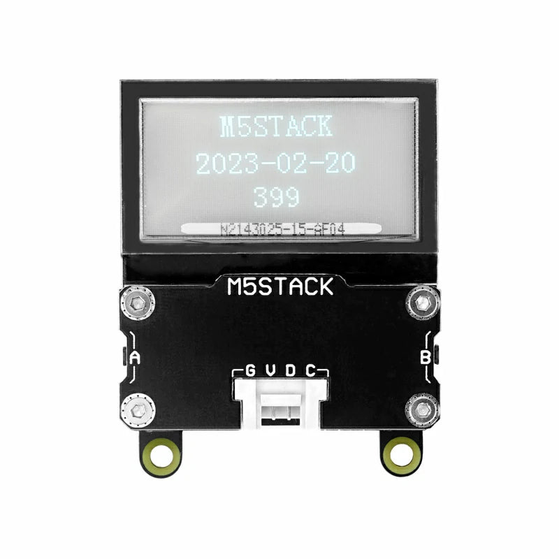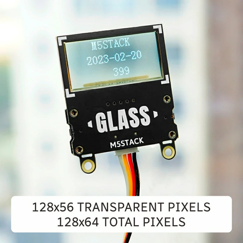 Glass Unit is a transparent OLED expansion screen unit with a size of 1.51 inches. It is designed to provide a monochrome display with a resolution of 128x64 pixels. The transparent area of the screen measures 128x56 pixels, allowing for creative integration with other components or surfaces.