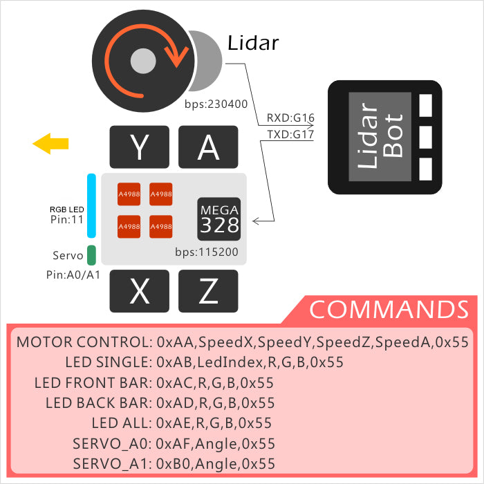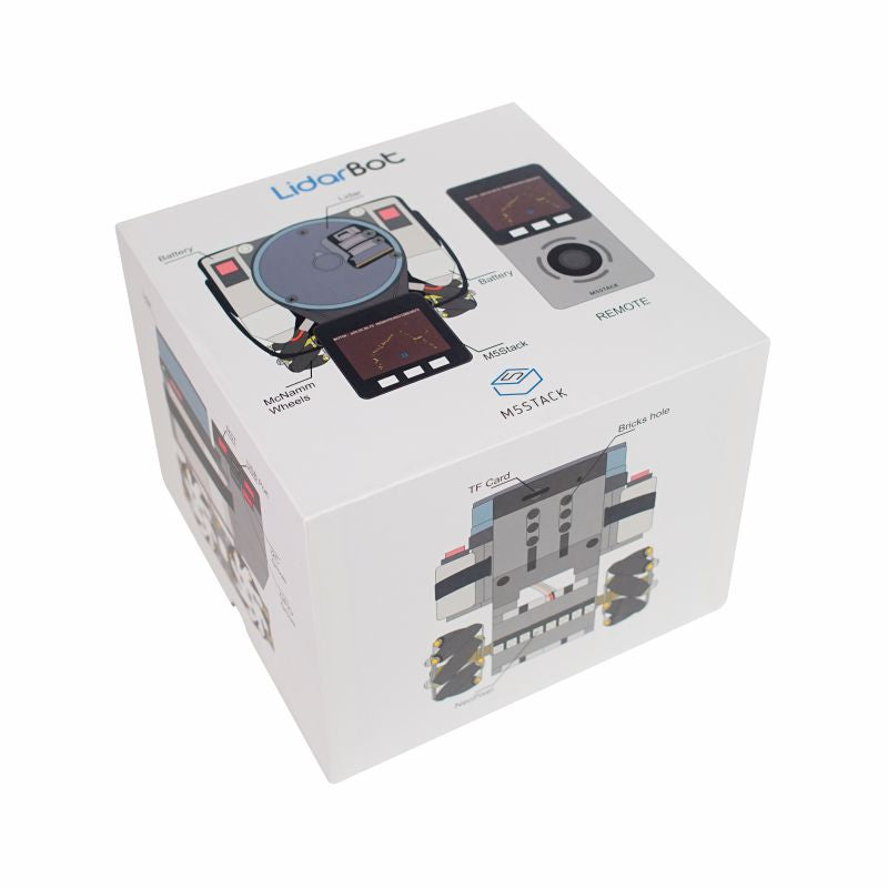 LidarBot is a powerful development kit for Automated Guided Vehicles(AGVs). Comes with a 360 Lidar sensor, 4 Mecanum wheels, M5 Core, RGB Bars and a remote conroller with Joystick panel and more。In addition, a trace kit is attached for the identification of black or white track line. With 4 Mecanum wheels, you can make it move to any direction, forward, backward, to left and to right. The Lipo Batteries enpower the Robot to run long-hours. You can display the map data, that obtained from the lidar sensor, on the screen or upload somewhere else thru Wi-Fi and program it into any format. We have implemented Real-time communication via ESP-NOW between robot and remote, Mazing-runing , self-tracing and more. If you are interest in AGV development, We especially encourage you to modify the open source code we have offered on github and enhance it yourself.