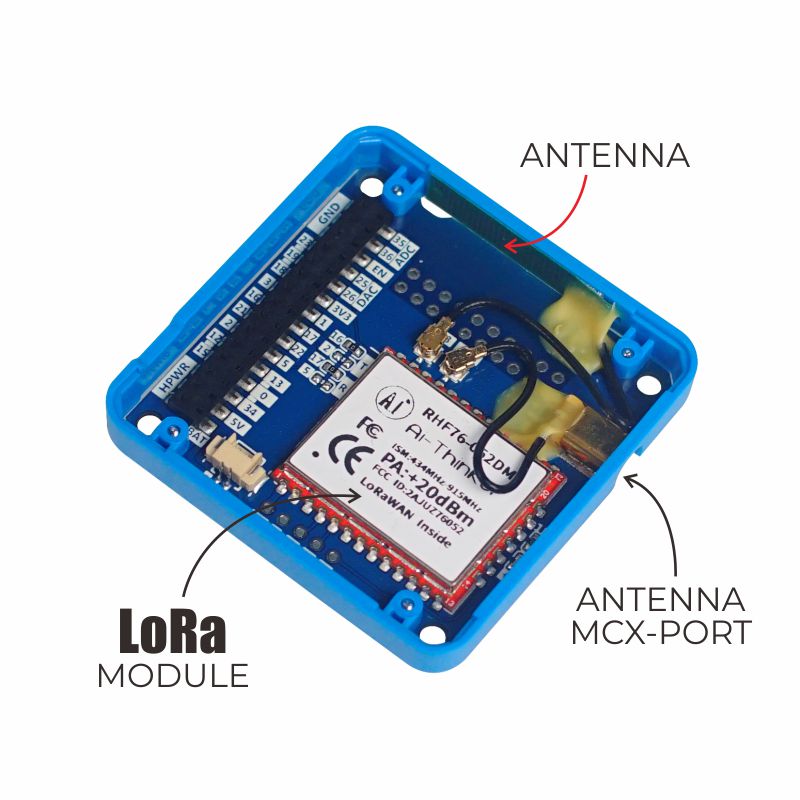 LoRaWAN built using the RHF76-052 with optional Antennas. RHF76-052 is designed by Ai-Thinker, it is a LoRaWAN ™ UART modem & compatible device, supports LoRaWAN communication. It's based on the RHF76-052 module and an embedded LoRaWAN stack. You can use M5 core as a host MCU to control this this modem with simple AT command or UART.