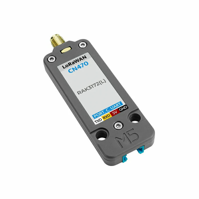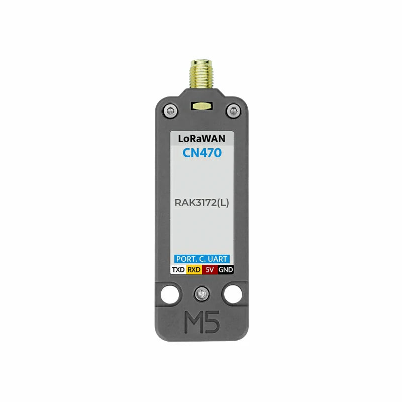Unit LoRaWAN-CN470 is a LoRaWAN communication module based on LoRa technology, specifically designed for the CN470 frequency band, suitable for China and other regions using the CN470 frequency band. The module adopts the STM32WLE5 solution, supporting long-range communication with low power consumption and high sensitivity characteristics. The module integrates the LoRaWAN protocol stack and supports three operating modes: Class A, Class B, and Class C. It also supports point-to-point (P2P) communication mode and uses a UART communication interface (controlled by the AT command set) for flexible configuration. Additionally, the product features a high-performance rubber antenna, with an optimized antenna design that provides more stable signal coverage and longer communication distance, making it suitable for various complex environments. The module can be used as a data collection node to connect to a gateway for data collection and management, or it can enable direct communication between devices in scenarios where no gateway is needed. It is widely used in long-range, low-power IoT communication scenarios, such as smart agriculture, industrial monitoring, and environmental monitoring node deployments.