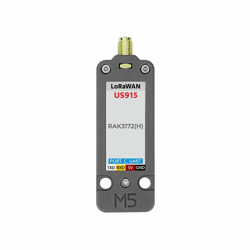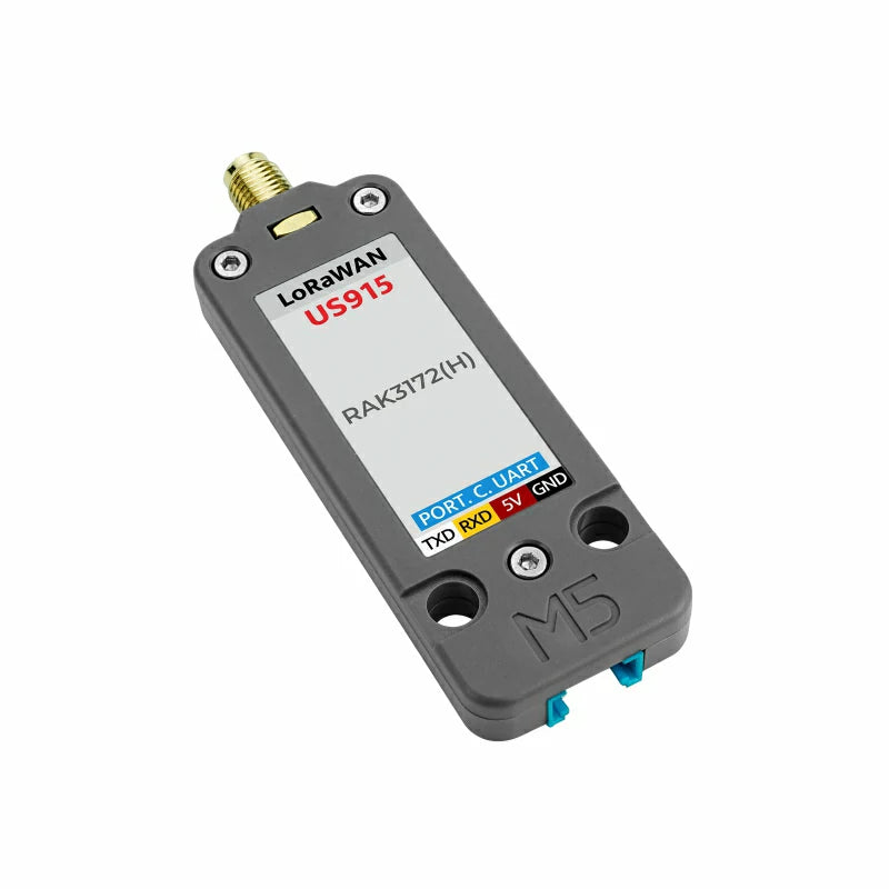 Unit LoRaWAN-US915 is a LoRaWAN communication module based on LoRa technology, specifically designed for the US915 frequency band, suitable for the United States and other regions using the US915 frequency band. The module adopts the STM32WLE5 solution, supporting long-range communication with low power consumption and high sensitivity characteristics. The module integrates the LoRaWAN protocol stack and supports three operating modes: Class A, Class B, and Class C. It also supports point-to-point (P2P) communication mode and uses a UART communication interface (controlled by the AT command set) for flexible configuration. Additionally, the product features a high-performance rubber antenna, with an optimized antenna design that provides more stable signal coverage and longer communication distance, making it suitable for various complex environments. The module can be used as a data collection node to connect to a gateway for data collection and management, or it can enable direct communication between devices in scenarios where no gateway is needed. It is widely used in long-range, low-power IoT communication scenarios, such as smart agriculture, industrial monitoring, and environmental monitoring node deployments.