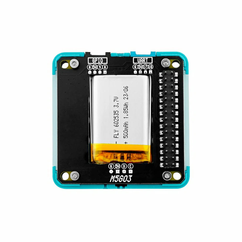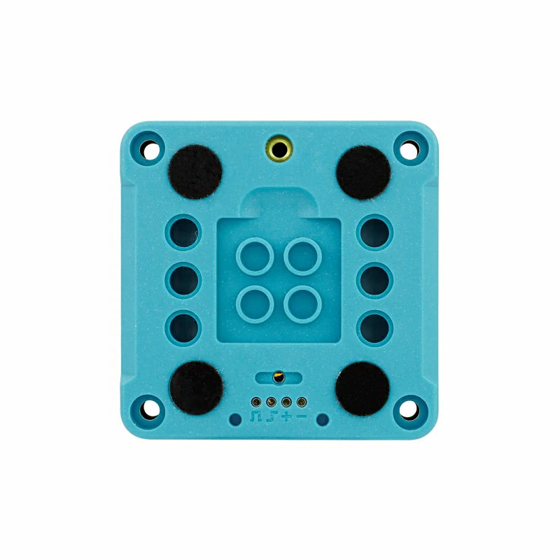 Base M5GO Bottom3 is an expansion base specifically designed for CoreS3, integrating an infrared emission LED and a 500mAh lithium battery. Two sets of HY2.0-4P expansion interfaces common ADC/DAC/UART pins for connecting various types of sensors. There are 10 programmable RGB lights (WS2812) on each side of the base. Combined with a frosted light-transmitting shading strip, they can provide a soft and comfortable lighting effect. The bottom uses a pogo pin magnetic charging interface. When attached to the charging base, current will flow safely into the internal battery through the built-in TP4057 charging chip. In addition to the charging function, the pogo pin interface the main control I2C bus, allowing users to externally connect expansions via magnetic attraction. It has built-in adsorption magnets and a LEGO-compatible hole design on the back, enabling seamless docking with LEGO structural designs.