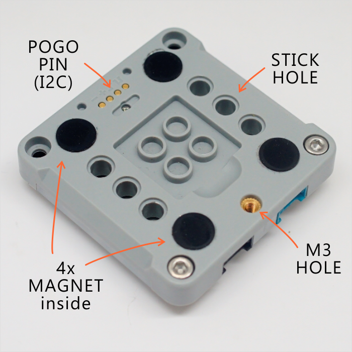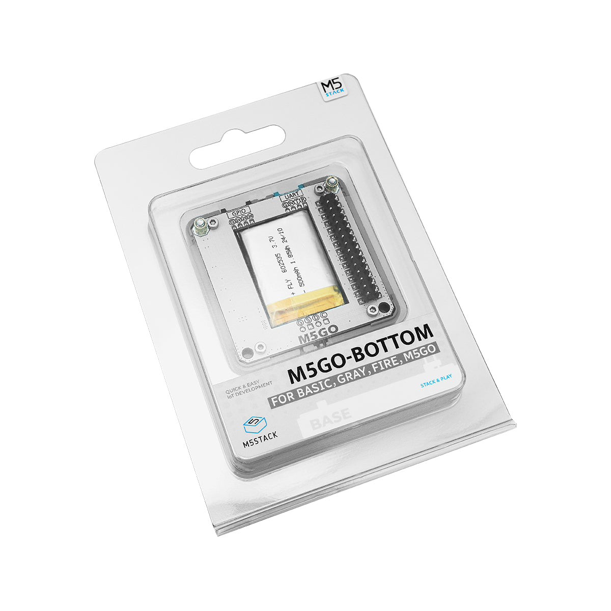 Base M5GO Bottom is a Core-enhanced universal base compatible with various Core models. Compared with the basic Core Bottom, the enhanced base is equipped with a larger-capacity lithium battery (500 mAh), and integrates a microphone, LED light strip, infrared LED, and expands two HY2.0 interfaces (PORT.B/PORT.C), etc. Its back is compatible with Lego holes, and pogo pins are led out for connecting supported I2C devices (such as BALA) or magnetic charging bases.
