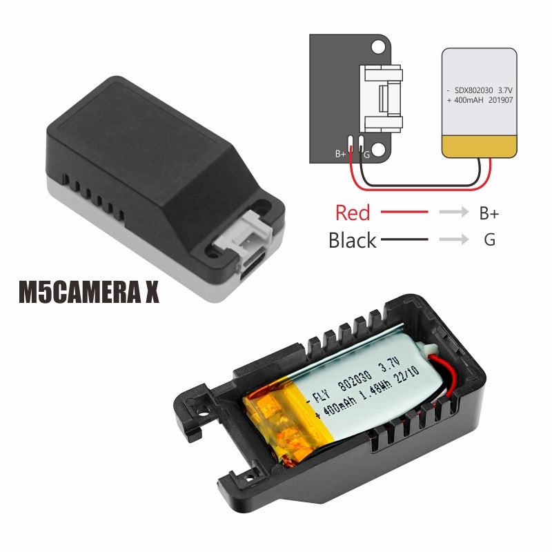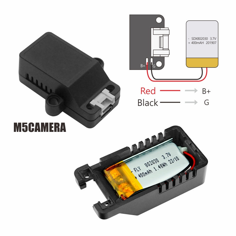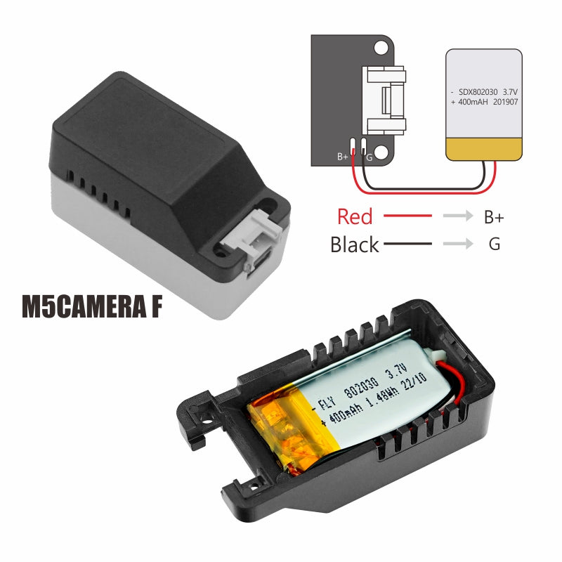 This is a battery base for 3 types of M5Cameras: M5Camera, M5Camera_X, M5Camera_F. It is a 400mAh lithium polymer battery.
