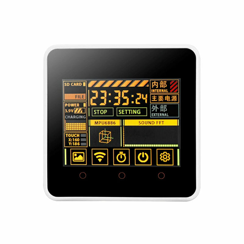 - Built-in speaker, power indicator, vibration motor, RTC, I2S amplifier, capacitive touch screen, power button, reset button