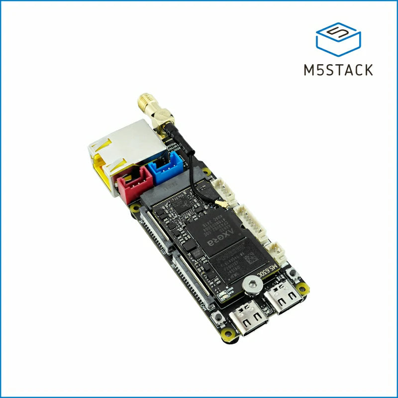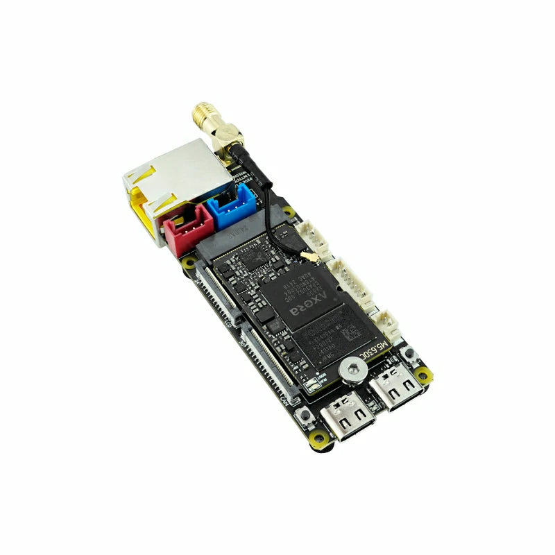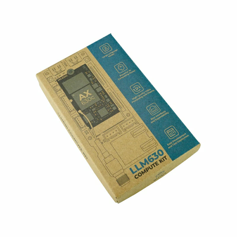 LLM630 Compute Kit is an AI large language model inference development platform designed for edge computing and smart interactive applications. This kit’s mainboard is equipped with an Aixin AX630C SoC processor, integrating a high-efficiency NPU with 3.2 TOPs@INT8 computing power, providing powerful AI inference capabilities to efficiently execute complex vision (CV) and large language model (LLM) tasks, meeting the needs of various intelligent application scenarios. The mainboard is also equipped with the JL2101-N040C Gigabit Ethernet chip and ESP32-C6 wireless communication chip, supporting Wi-Fi 6@2.4G as the device’s network card, providing high-speed data transmission for bridge functionality between Wi-Fi and Ethernet. Whether through a wired connection for large-scale data exchange or via wireless communication for real-time interaction with a remote server or other smart devices, this platform ensures efficient data exchange. The mainboard also integrates an SMA antenna interface to further enhance the stability and transmission range of wireless signals, ensuring stable communication in complex network environments. It comes with 4GB LPDDR4 memory (of which 2GB is for user usage, 2GB for hardware acceleration) and 32GB eMMC storage, supporting parallel loading and inference of multiple models for efficient and smooth task handling.