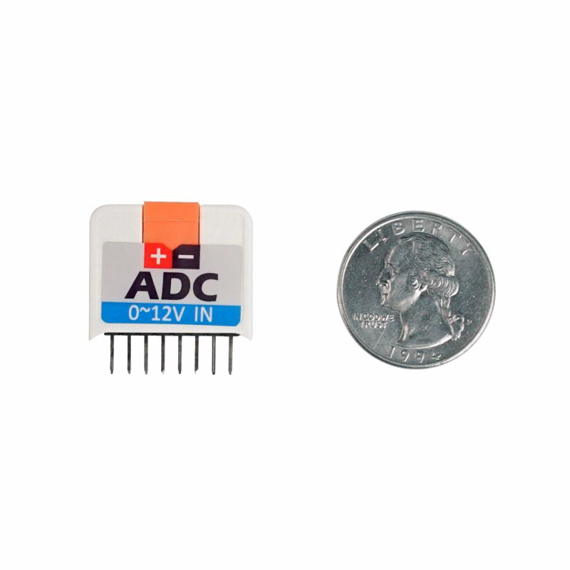 The ADS1100 includes a Δ-Σ A/D converter core with adjustable gain, a clock generator, and an I2C interface. It allows for differential inputs ranging from -5V to +5V. However, through additional circuitry in the design of the module, the input range is limited to 0V to 12V.