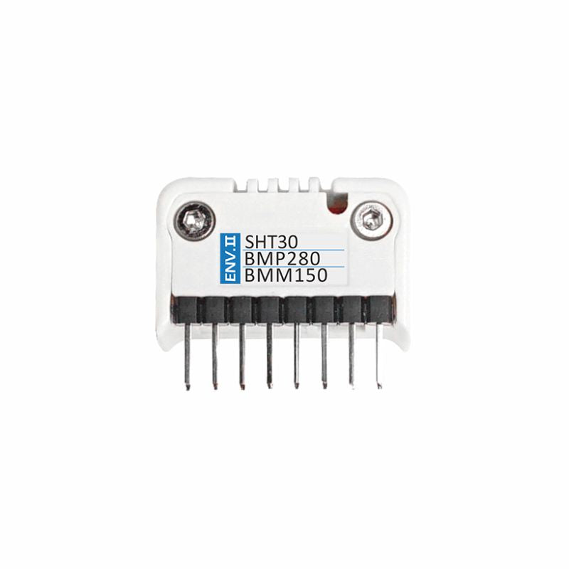 ENV II HAT is an environment sensor which can sense temperature, humidity and atmospheric pressure. It is built with SHT30, BMP280 and BMM150 sensors, it is programmed over I2C. SHT30 is a digital temperature and humidity sensor with high precision and low power consumption. BMP280 is an absolute barometric pressure sensor which is especially designed for mobile applications. BMM150 is a magnetometer, which can be used to monitor the change of magnetic field and the direction of magnetic field.It offers the highest flexibility to optimize the device regarding power consumption, resolution and filter performance.