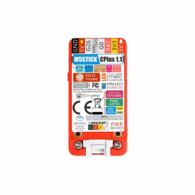 M5StickC PLUS is an upgraded version of the original M5StickC, featuring ESP32-PICO-D4 with Wi-Fi connectivity and a larger screen. This compact and portable IoT development board is designed to be user-friendly and open source, allowing you to easily bring your ideas to life and accelerate your IoT prototyping process. With M5StickC PLUS, you can enjoy a streamlined development experience, reducing the complexities often associated with building IoT projects.