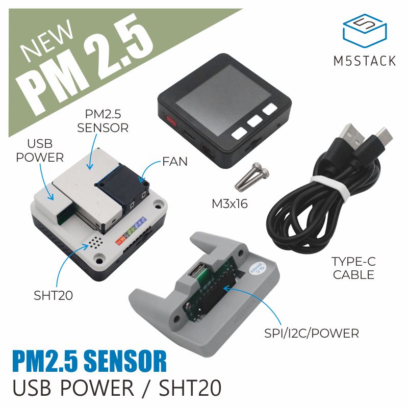 PM2.5 is a pollution sensor base with affordable price and high performance. Integrated with PMSA003 and SHT20, makes it possible to measure the ambient quality of air, temperature, and humility all at one device.