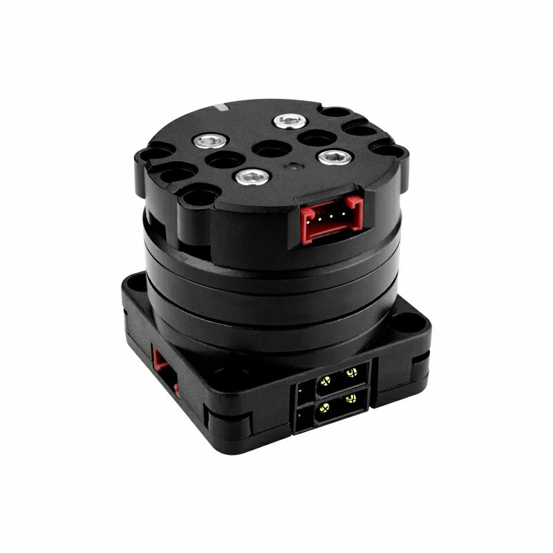(XT30) interface) or 5V input (via the Grove interface) and can automatically adjust the power factor to ensure optimal performance. It features a built-in FOC closed-loop drive system, using a 3504 200KV brushless motor. The maximum continuous operating phase current is 0.5A without forced cooling, and 1A for short-term. The driver uses a magnetic encoder for feedback and supports current, speed, and position triple-loop control, ensuring precise control. The unit’s shaft can optionally include a slip ring, allowing the Grove interface on the top to remain connected with the bottom, supporting 360° rotation while expanding additional modules at the top. This ensures power and data transmission through the rotating part.