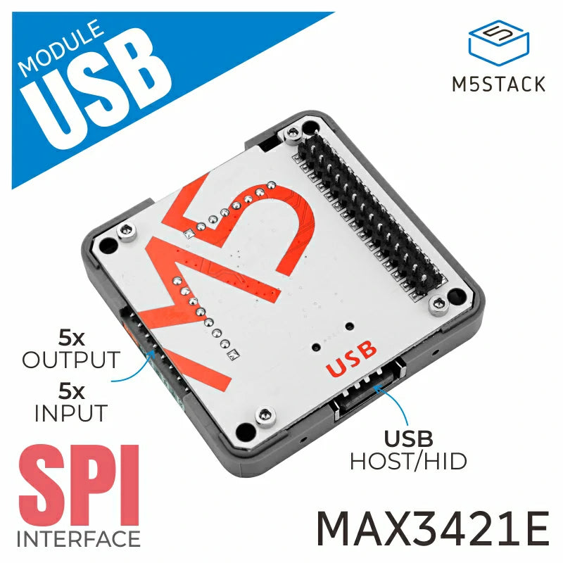 USB is a USB driver module, integrated MAX3421E which adds USB host or peripheral capability to any system with an SPI interface. Ever up for adding the standard USB features on your project? this M5 module is the perfect solution.